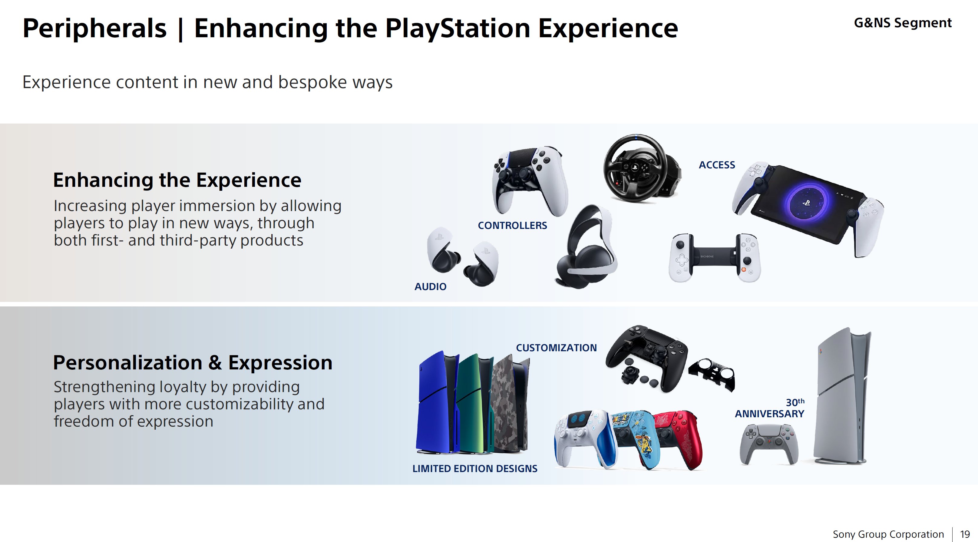 Foco do PlayStation: “O console e além” com o além sendo: trazendo jogos para PC, em uma data posterior, periféricos ocmo PS Portal, e expandir IPs para filmes, séries, animes e outras mídias;