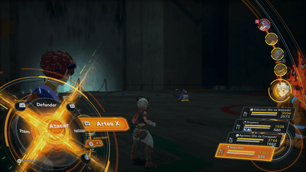 Aliás, um ponto que merece elogio é de que, ao utilizar habilidades exclusivas de cada um dos digimons, todas elas possuem sua própria animação, sendo possível notar todo esse cuidado e dedicação que tiveram para se diferenciar de outros jogos, onde a animação utilizada é sempre a mesma.