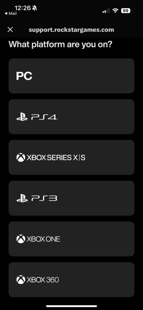 Na página de suporte no site oficial da Rockstar, em uma das telas após selecionar GTA IV como jogo, aparecem diversas opções de plataforma, e uma dela é bastante inesperada: PlayStation 4. Veja a imagem abaixo: