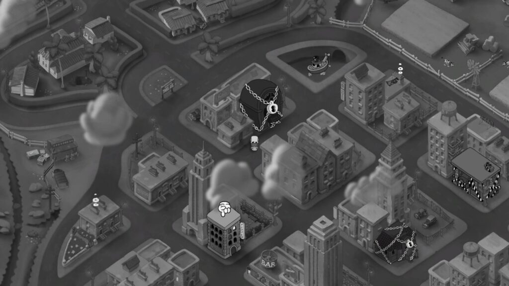 Ao sair do Hub para o mapa-múndi, a transição para as missões ocorre via carro. Embora haja liberdade de navegação pelo mapa, o jogo impõe uma limitação importante: não é possível revisitar fases finalizadas.
